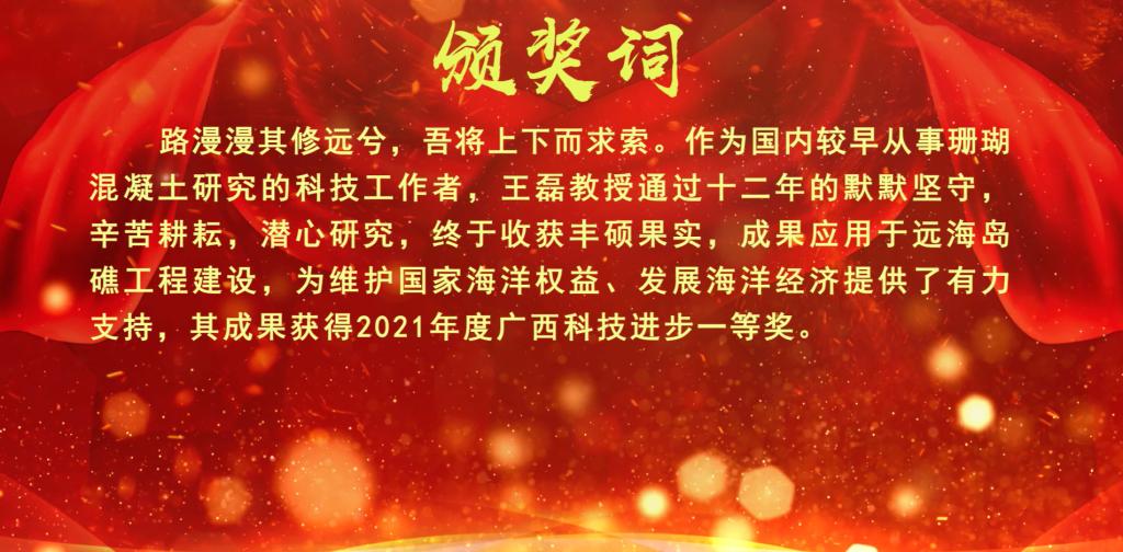 王磊,beat365英国官方网站科技处处长,二级教授,博士生导师。广西卓越学者,广西高校高水平创新团队“海岛及海岸混凝土结构”带头人。先后主持国家重点研发计划课题、国家自然科学基金、广西创新驱动重大专项课题等省部级以上项目20余项。共发表学术论文80余篇,其中SCI/EI期刊论文30余篇,授权国家发明专利5项。获广西科技进步一等奖、教育部科技进步二等奖、广西科技进步二等奖等奖励。长期从事海洋环境混凝土材料与结构、固废资源化利用等领域的研究,在推动远海岛礁建设、建筑与工业固废资源化集成应用、节能减排及循环经济发展方面作出了突出贡献。