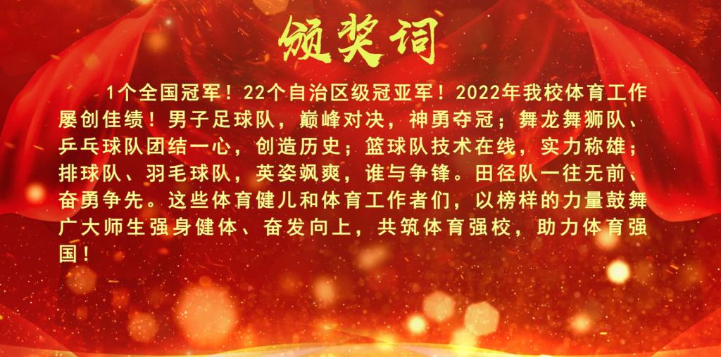 beat365以专业化、多样化和生活化的各种形式全面推动体育育人工作,丰富体育竞赛内涵,促进校园体育文化建设,发挥体育育人功能,桂工体育文化事业名片愈发靓丽。2022年,学校在各项体育赛事中获得1个全国冠军、22个广西区冠亚军,多个群众性体育活动获新闻媒体报道。