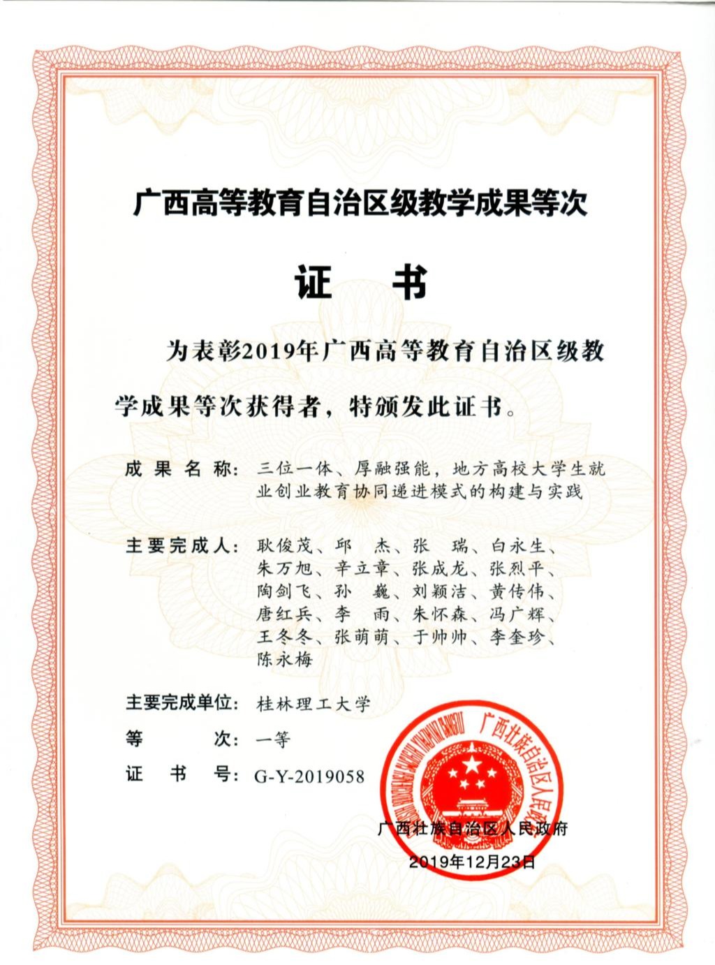 获广西科学技术进步一等奖