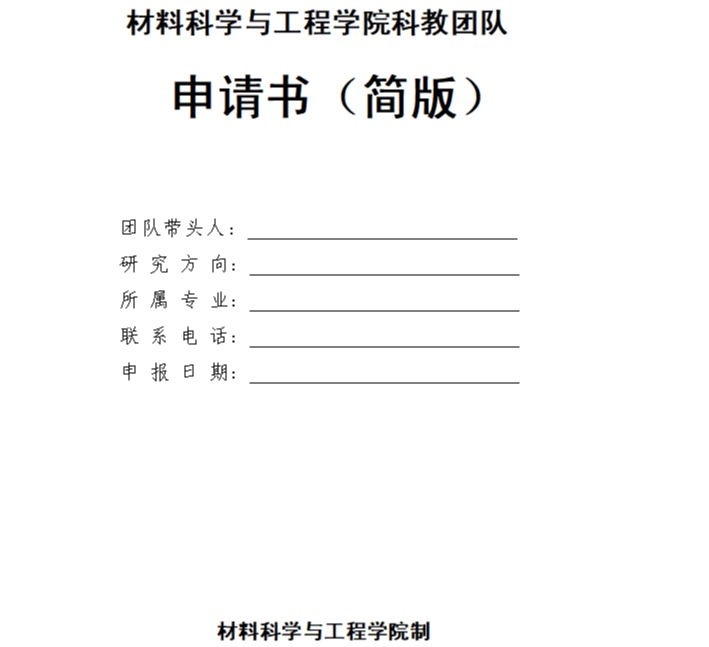 组织填报《材料科学与工程学院科教团队申请书》并遴选团队