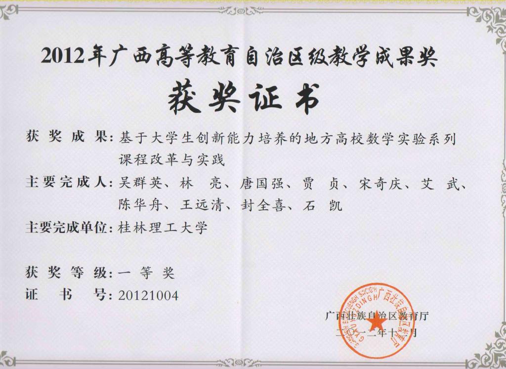 《统计学》《线性代数》等基础课程获自治区级精品课程