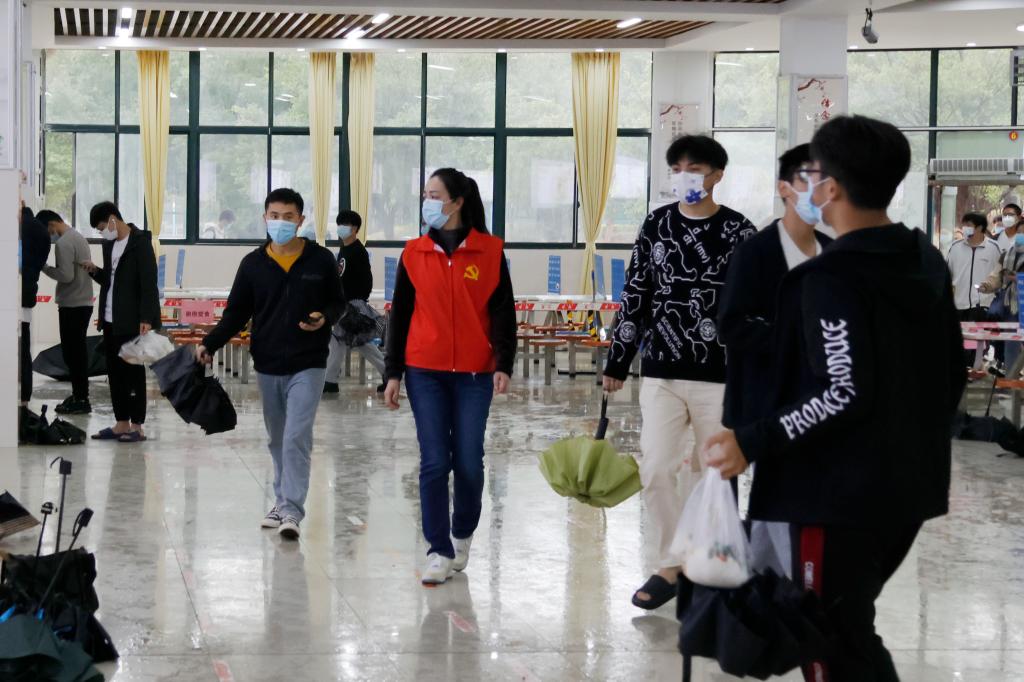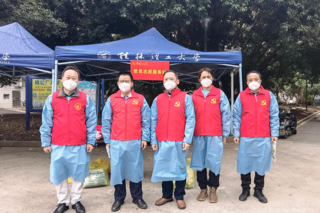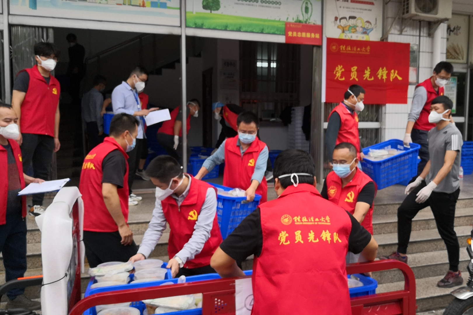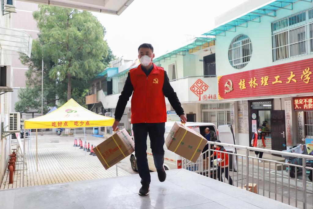 面对桂林市复杂严峻的疫情防控形势,校园防疫刻不容缓。beat365党委领导班子连续召开疫情防控调度会,全面动员、全线部署校园疫情防控和安全稳定具体工作。全校上下积极响应,教职员工迅速集结,牢牢织起了一张校园疫情防控网,无论是召之即来、来即能战,无条件冲在一线的党员志愿者,还是主动靠前、并肩逆行,贴心给师生群众提供服务的普通教职员工,穿上红马甲、戴上红袖章,他们便有了一个共同的名字——“校园防疫志愿服务队”。他们挨家挨户发放“爱心食材包”,组建“一日三餐”运输服务队,穿梭于楼栋上门核酸采样,“管家式”的服务暖了人心,更凝聚了力量。
