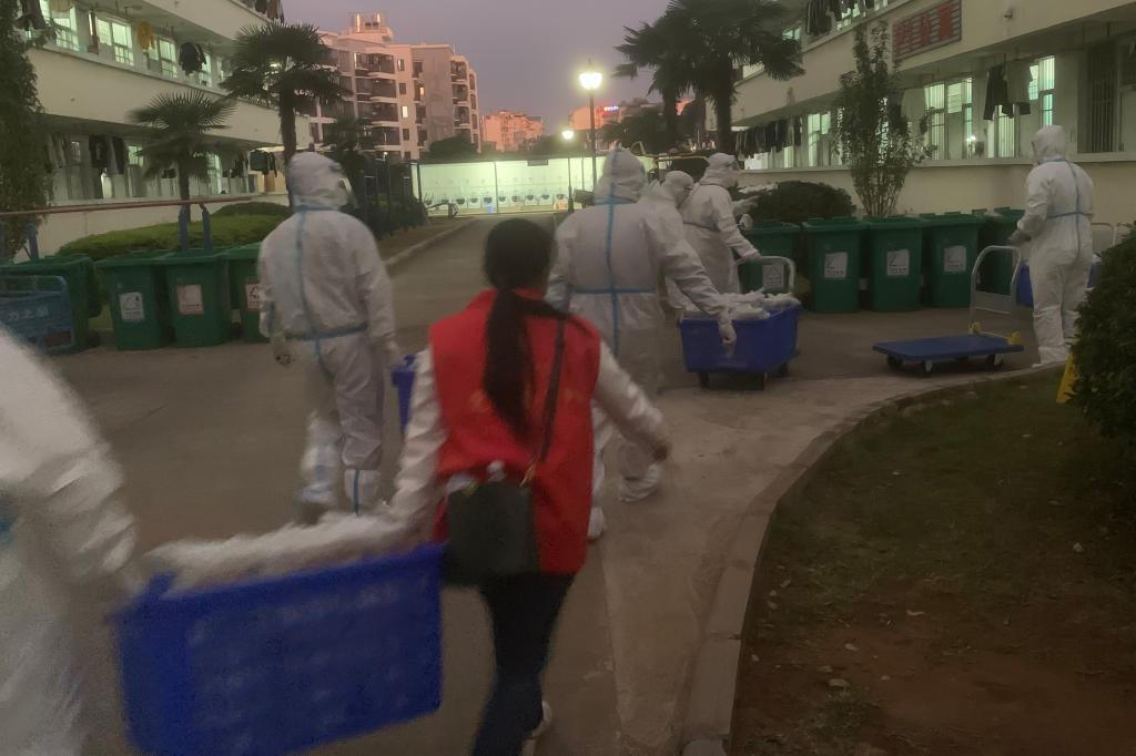 志愿者们在搬运和配送物资