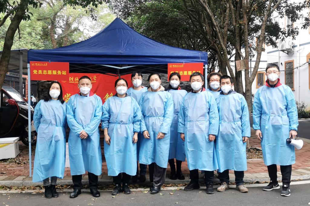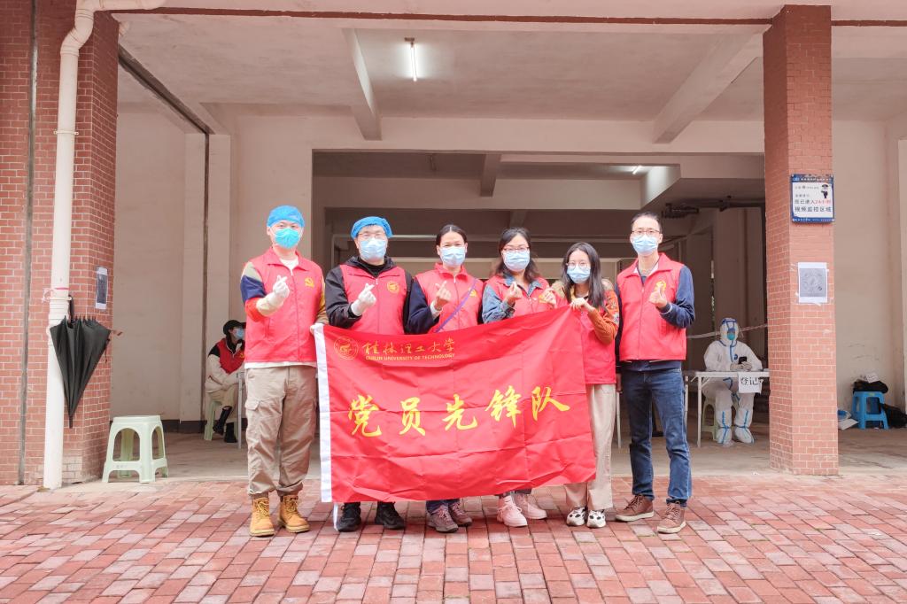 “防疫情,做核酸,做完核酸好心安;戴口罩,排好队,间隔两米要学会;不漏户,不漏人,全员核酸听指引;分开走,不逗留,采样完毕快上楼;桂工人,且等候,疫情消散再聚首。”志愿者贴心地将核酸采样注意事项编成了顺口溜,连日来,学校教职工志愿者连续投入到校园核酸检测、疫情防控、物资保供、昼夜值班等工作中,从穿上“红马甲”的那一刻起,志愿者们每天都在岗十多个小时,衣服湿透了,饭菜凉了,一刻也没有停歇。