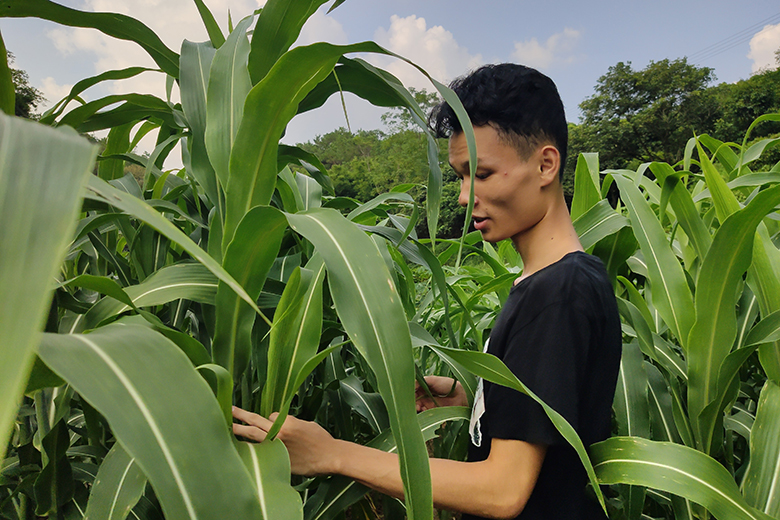 张成强同学观察玉米的生长状况