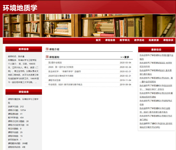 网络教学平台开设的《环境地质学》课程