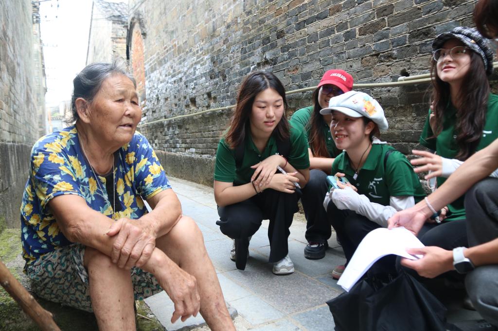 实践团将思考转化为行动力:为油茶产业提出“蹭饭书记”流量思路与“扁担女孩”带货设想;策划将扎染技艺与“桂林山水”结合开发校园文创、景区产品;他们向老人普及防诈知识,守护晚年安稳,更在古韵悠长的青石巷道与错落民居间,与村中老人围坐,共同奏唱红色歌曲。嘹亮歌声与悠扬二胡声在黛瓦白墙间回荡,老人们眼中深沉的赤诚、质朴的坚韧乐观与永不褪色的革命情怀,深深触动了学子,完成了一场跨越代际的精神传递。他们化身“童心播种员”,将宣讲内容转化为青少年听得懂、记得住的“童言童语”,让红色基因在稚嫩心田深植萌发。这些看似零散的片段,凝结成他们对“乡村振兴”最鲜活的理解:它是每一次弯腰劳作的踏实,每一次为村民支招的真诚,每一次守护文化与生态的坚持,更是商科智慧在乡土大地的生动实践。