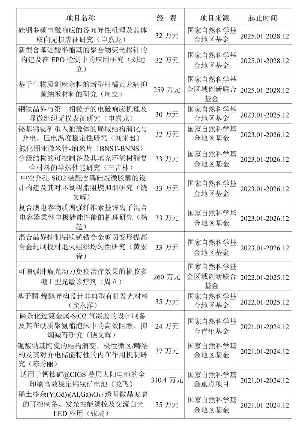 近5年团队国家自然科学基金立项情况