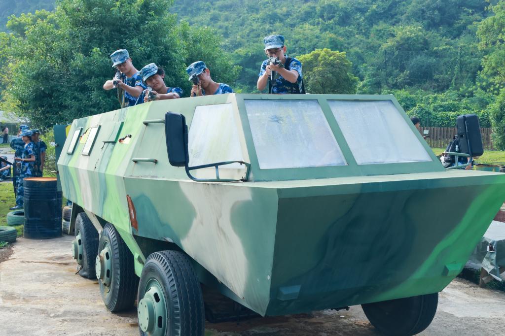 拉练队伍分批前往雁山消防救援大队和军博园,开展消防实战演练与国防教育基地参观。消防员现场讲解灭火器使用与火场逃生技巧,同学们踊跃参与模拟演练;军博园内,装甲车体验、模拟射击、战术对抗等项目,让大家近距离感受军事科技与国防文化的魅力。