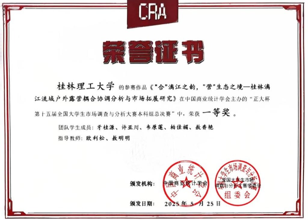 学生荣获第十五全国大学生市场调查与分析大赛一等奖