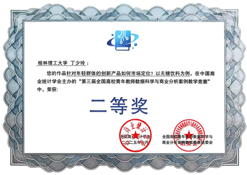 教师荣获第三届全国高校青年教师数据科学与商业分析案例教学竞赛中荣获二等奖