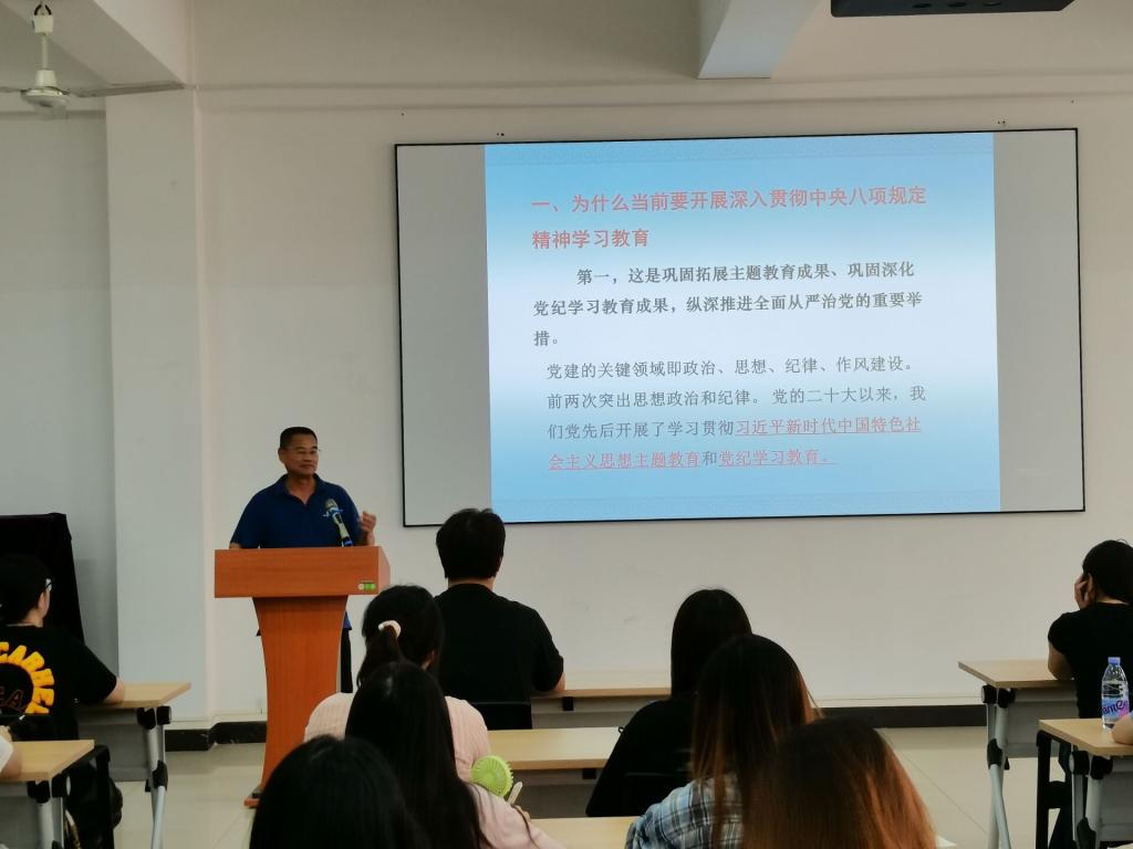 于海平老师为商学院学生讲授深入贯彻中央八项规定精神学习教育专题党课