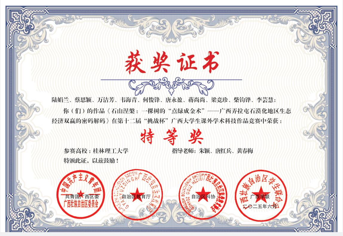 学院学子获第十二届“挑战杯”广西大学生课外学术科技作品竞赛特等奖