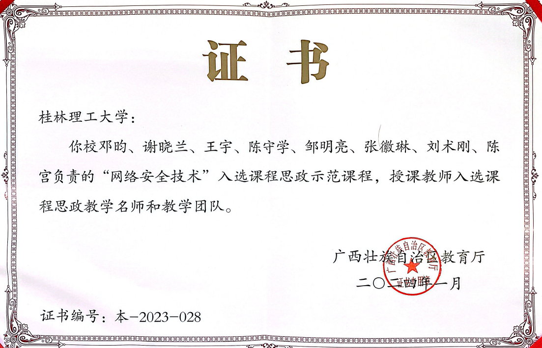 “网络安全技术”入选自治区“课程思政示范课程”