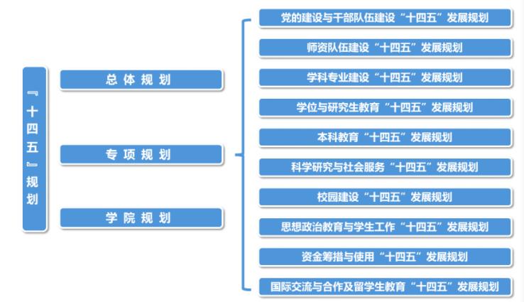 一是科学编制“十四五”规划。坚持以立德树人为根本,以提高人才培养质量为核心,深入贯彻落实学校第三次党代会精神,系统编制并实施“十四五”发展规划,构建了由总规划、专项规划、学院规划组成的“1+10+16”规划体系。二是强化规划落地实施。将规划重点任务纳入年度重点业务目标和工作计划,推动规划落地;开展规划实施中期检查,对各类规划的目标达成、任务推进和举措落实情况进行全面评估,分析关键指标进度,并反馈后续推进建议。三是扎实开展终期评估总结。梳理规划实施成效,客观评估主要发展目标的完成质量,为科学编制“十五五”规划奠定坚实基础。