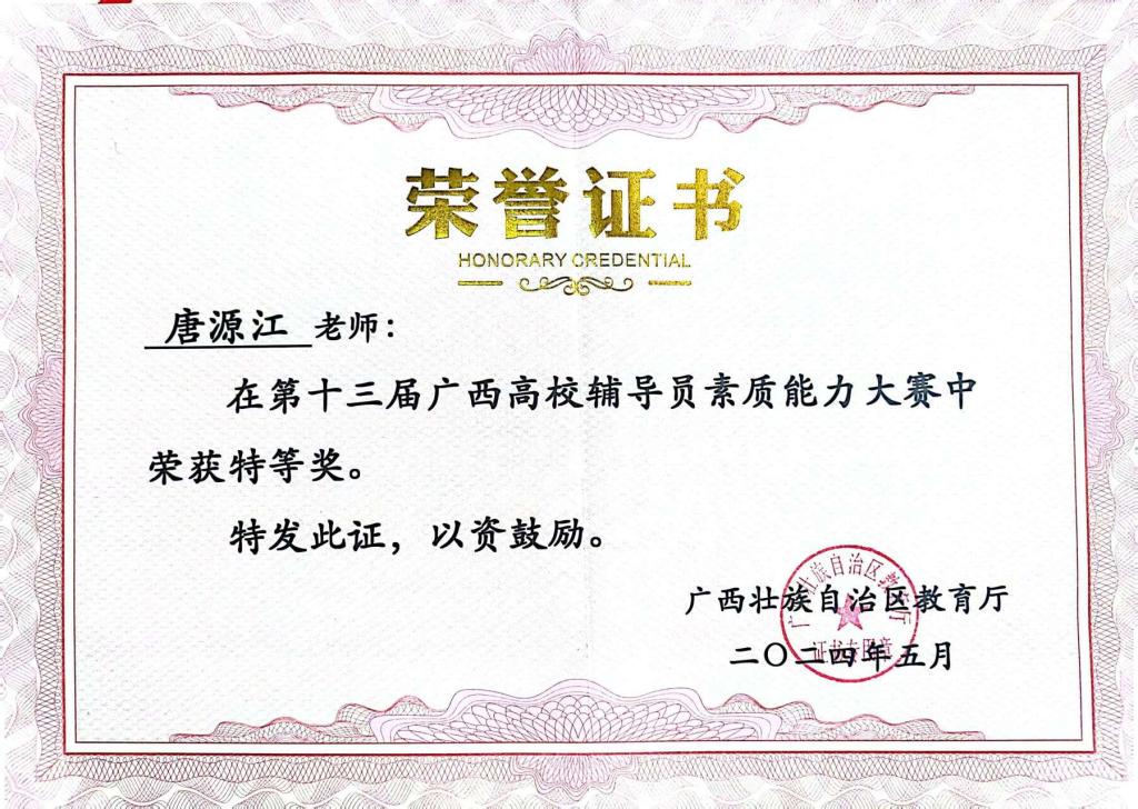 学院教师荣获广西高校辅导员素质能力大赛特等奖
