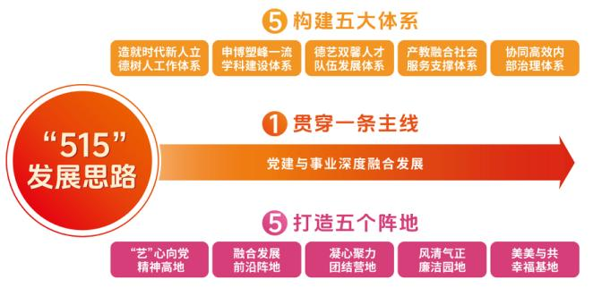 艺术学院党委坚持以习近平新时代中国特色社会主义思想为指导,全面落实立德树人根本任务,认真贯彻学校第三次党代会部署,着力实施党建引领事业发展 “515”战略(以构建完善造就时代新人立德树人工作体系、申博塑峰一流学科建设体系、德艺双馨人才队伍发展体系、产教融合社会服务支撑体系、协同高效内部治理体系等五大体系为路径,以党建与事业融合发展为主线,聚力打造“艺”心向党精神高地、融合发展前沿阵地、凝心聚力团结营地、风清气正廉洁园地、美美与共幸福基地),推动“艺院五地”建设谱写新篇章,学院党委获评为自治区党委教育工委先进基层党组织、beat365英国官方网站先进基层党组织。