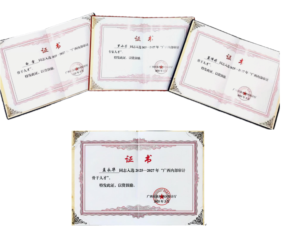 围绕新时代对审计工作提出的新要求,构建系统化、专业化的培训体系。通过业务轮训、案例研讨、参与上级审计机关项目、“以审代训”等多种方式,全面提升审计人员在财务、工程、法律、大数据分析等方面的专业素养和实战能力。4人入选区审计厅人才库;1人通过入选广西“十百千”高端会计人才;5人次参与区审计厅审计项目和教育厅专项检查项目,抽审人员的专业能力及敬业态度获得了抽调单位的高度好评;8人次参加校内巡察和专项检查工作;1人在广西内审协会教育分会上分享审计经验;举办1次桂林高校审计业务研讨会;2人获得审计厅立项的科研项目,多方式务实审计人员实操功底,努力实现理论实践“双融合”。