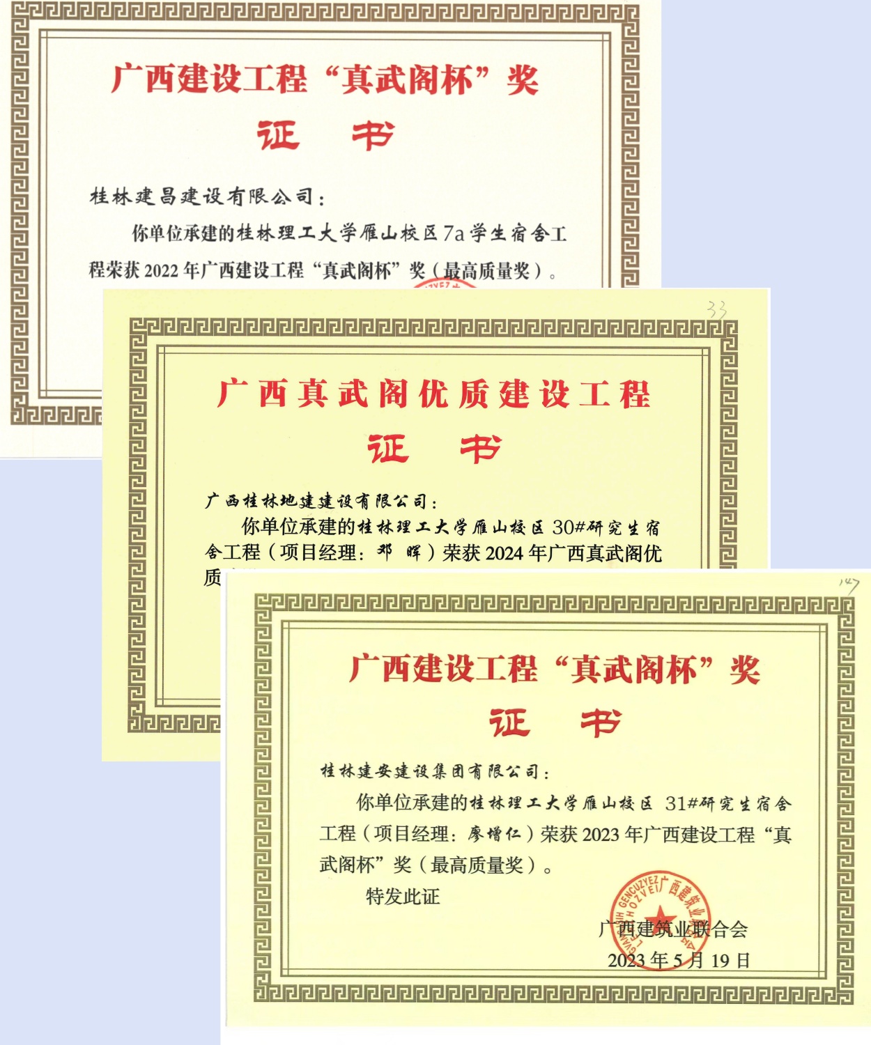 雁山校区7a、30#、31#研究生宿舍获广西建设工程“真武阁杯”奖(最高质量奖)